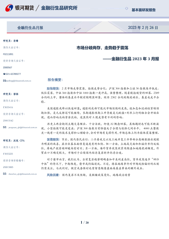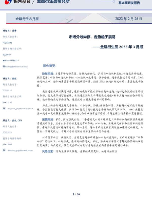 【银河期货】【20230226】金融衍生品2023年3月报:市场分歧尚存,走势趋于震荡-20页