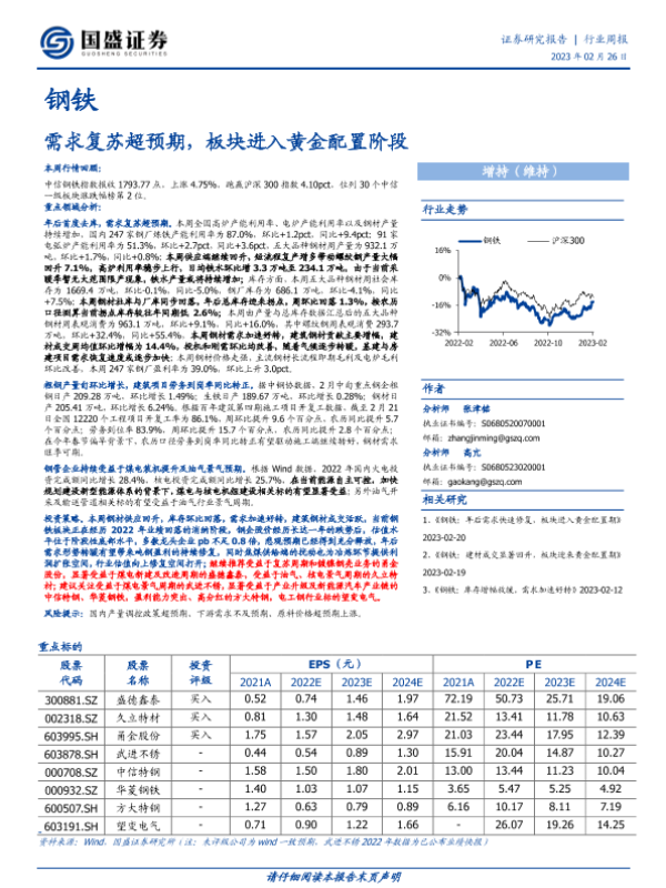 【国盛证券】【20230226】钢铁行业周报:需求复苏超预期,板块进入黄金配置阶段-16页