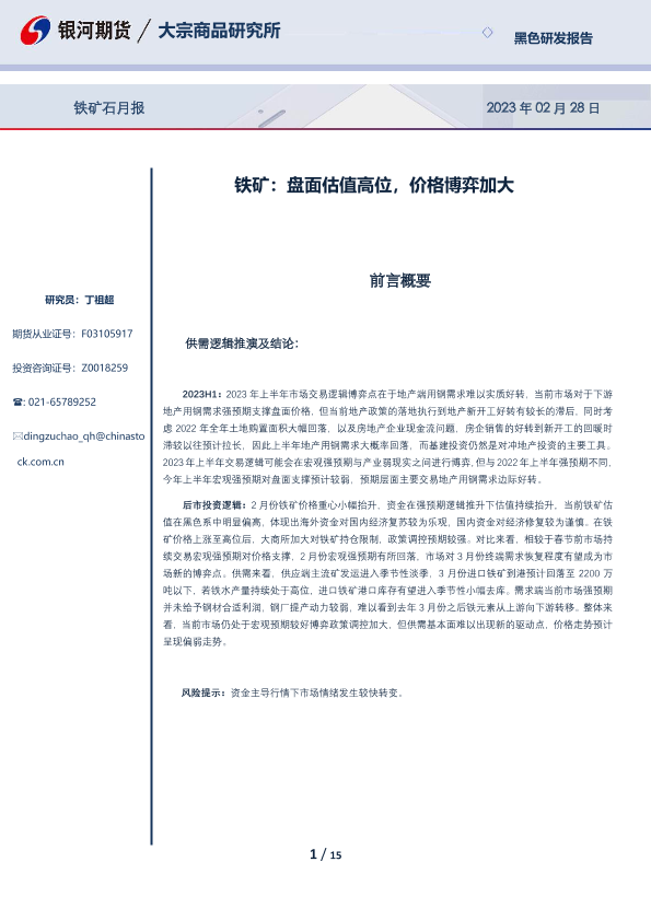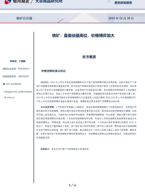 【银河期货】【20230228】铁矿石月报:铁矿,盘面估值高位,价格博弈加大-15页