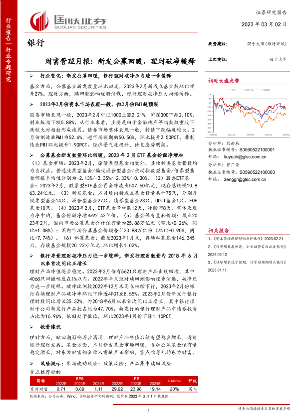 【国联证券】【20230302】银行业财富管理月报:新发公募回暖,理财破净缓释-24页