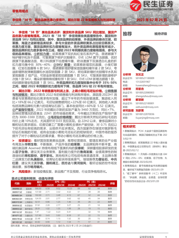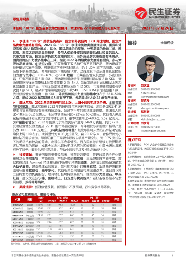 【民生证券】【20230226】零售周观点:李佳琦“38节”国货品牌优惠力度提升,戴比尔斯22年实现收入与利润双增-17页