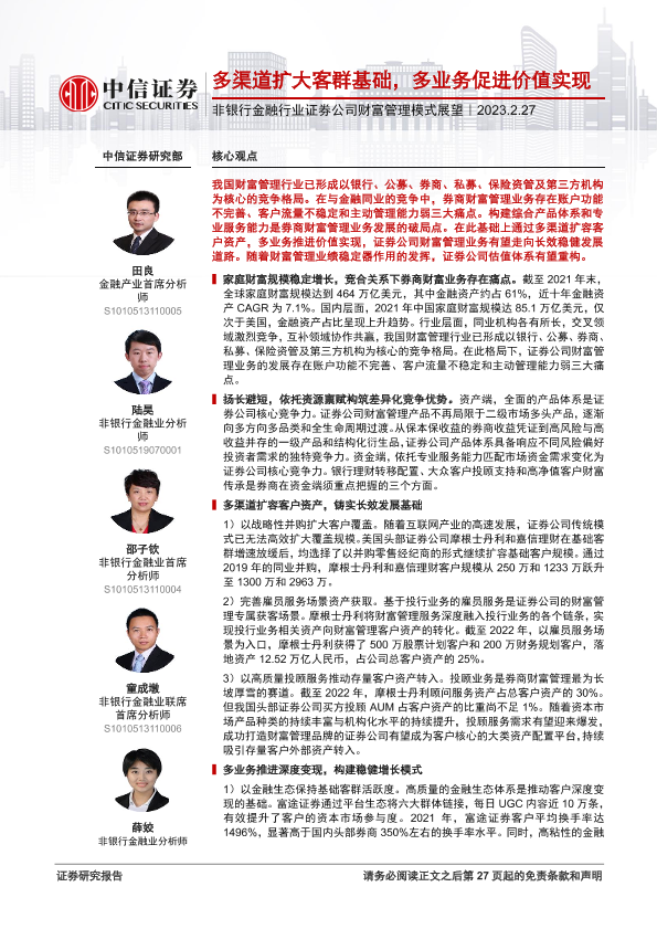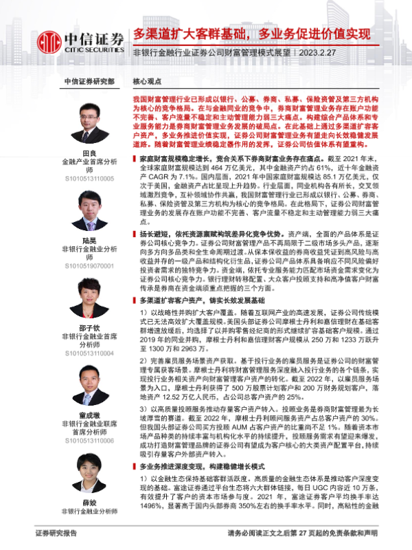 【中信证券】【20230227】非银行金融行业证券公司财富管理模式展望:多渠道扩大客群基础,多业务促进价值实现-28页