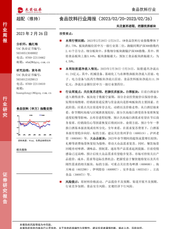 【东莞证券】【20230226】食品饮料行业周报:关注复苏进程,把握优质板块-15页