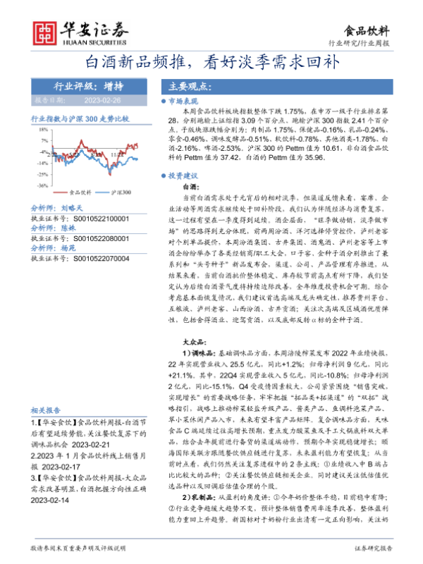 【华安证券】【20230226】食品饮料行业周报:白酒新品频推,看好淡季需求回补-17页