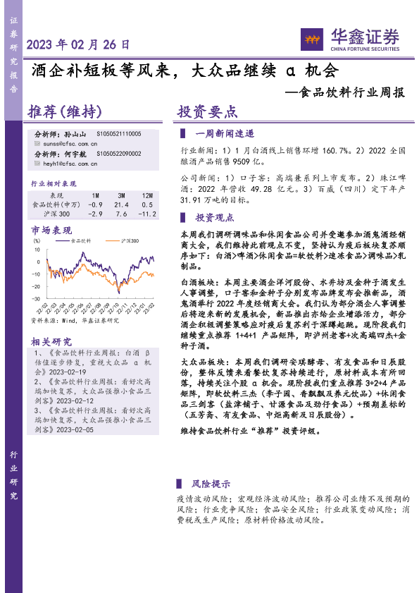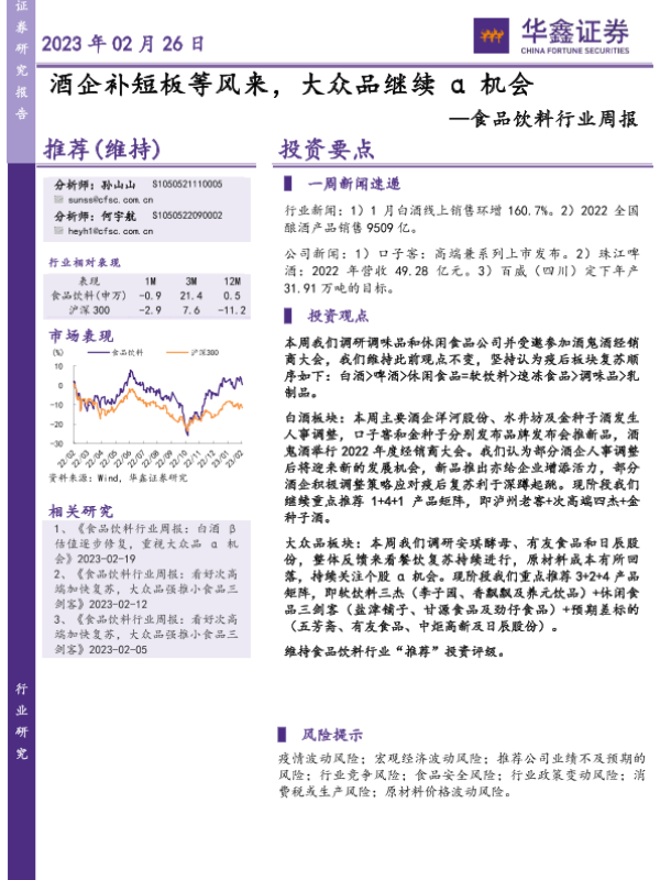 【华鑫证券】【20230226】食品饮料行业周报:酒企补短板等风来,大众品继续α机会-23页