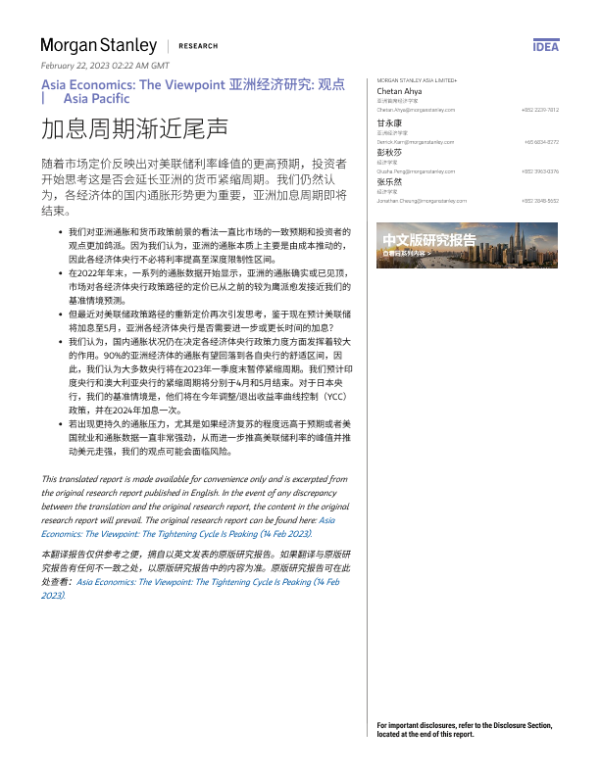 【Morgan Stanley】【20230214】亚洲经济研究 观点 加息周期渐近尾声-11页