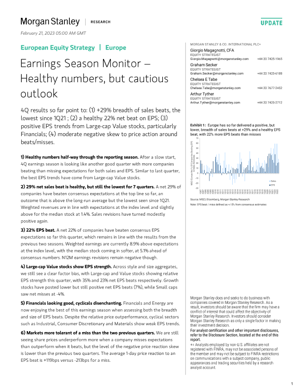 【Morgan Stanley】【20230221】European Equity Strategy Earnings Season Monitor – Healthy numbers, but cautious outlook-21页