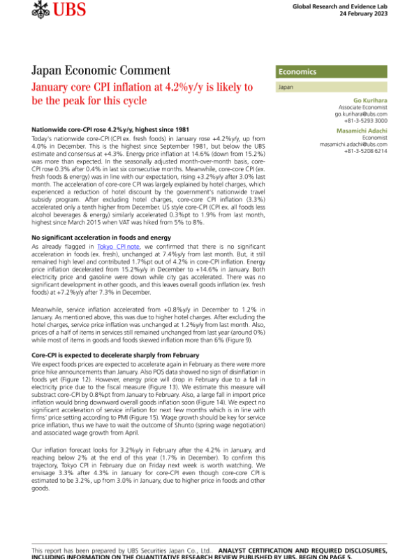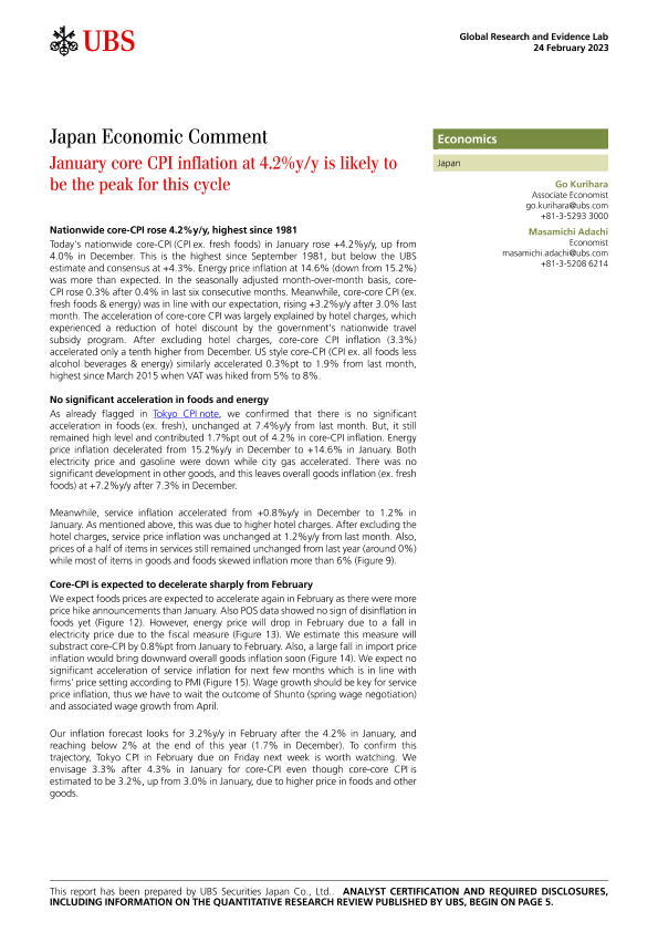 【UBS Securities Japan Co.&Ltd.】【20230224】Japan Economic Comment _January core CPI inflation at 4.2y-9页