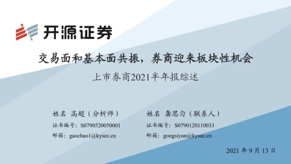 【开源证券】【20210913】证券行业上市券商2021半年报综述:交易面和基本面共振,券商迎来板块性机会-31页