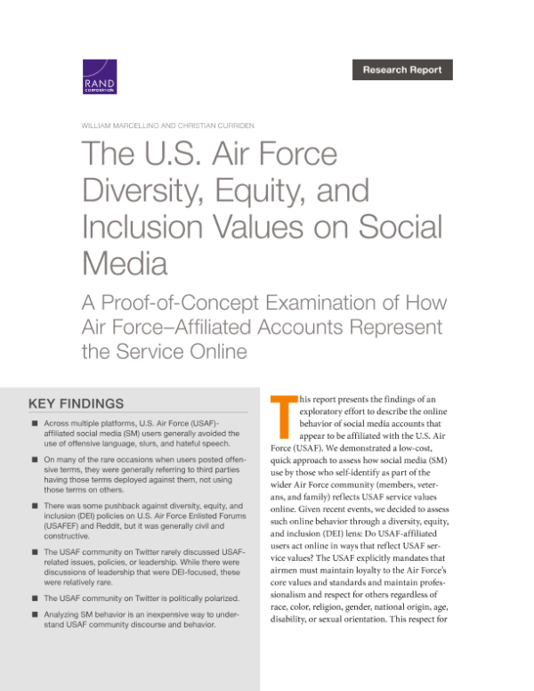 【兰德公司】【20230201】美国空军在社交媒体上的多样性、公平性和包容性价值观-16页
