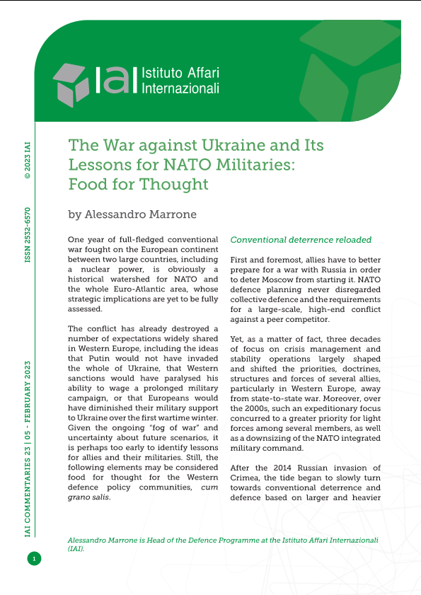 【国际事务研究院(Istituto Affari Internazionali】【20230205】对乌克兰的战争及其对北约军事人员的启示:思考的食粮-7页