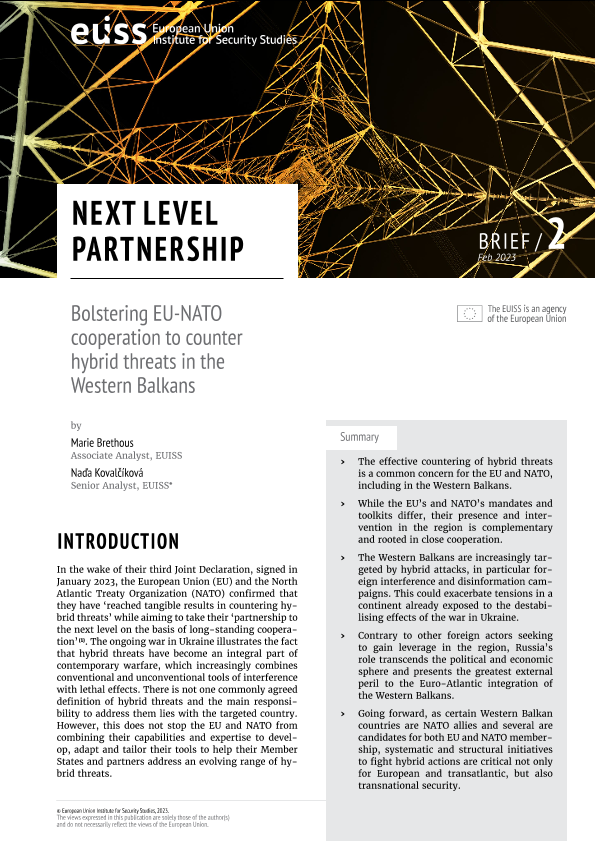 【欧洲安全研究所 (European Union Institute for Security Studies)】【20230201】下一级伙伴关系 - 加强欧盟合作,以应对西巴尔干地区的混合威胁-8页