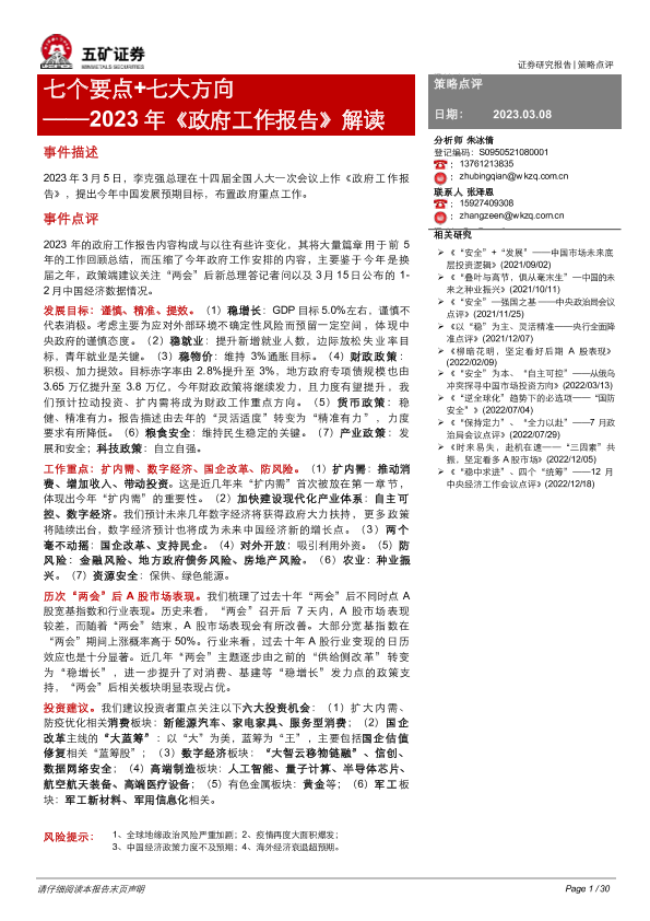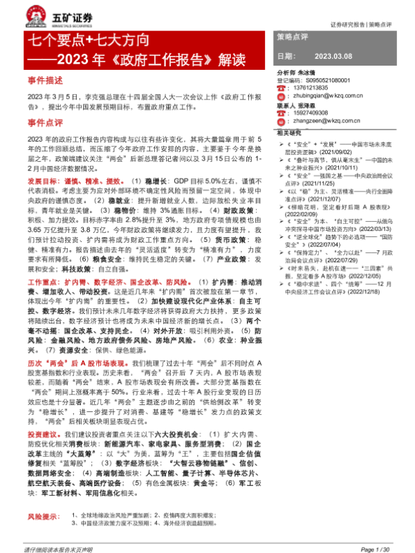 【五矿证券】【20230308】2023年《政府工作报告》解读:七个要点+七大方向-29页