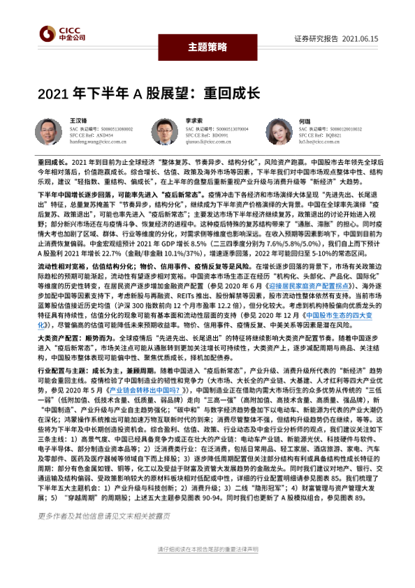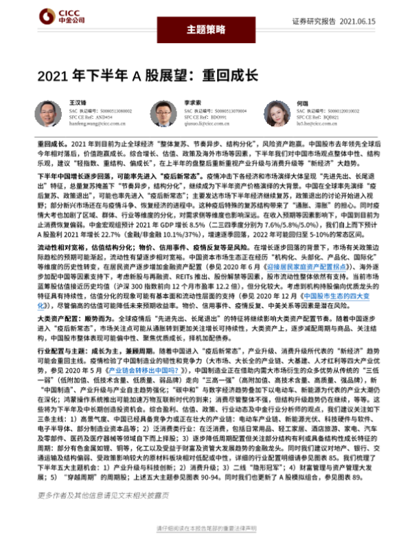 【中金公司】【20210615】2021年下半年A股展望:重回成长-56页