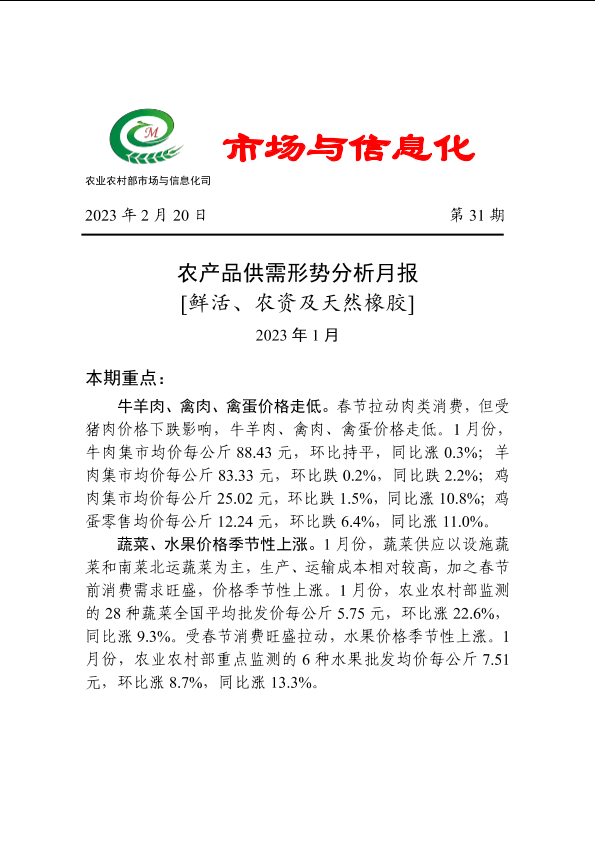 【农业农村部市场与信息化司】【20230220】2023年1月鲜活农产品供需形势分析月报-34页