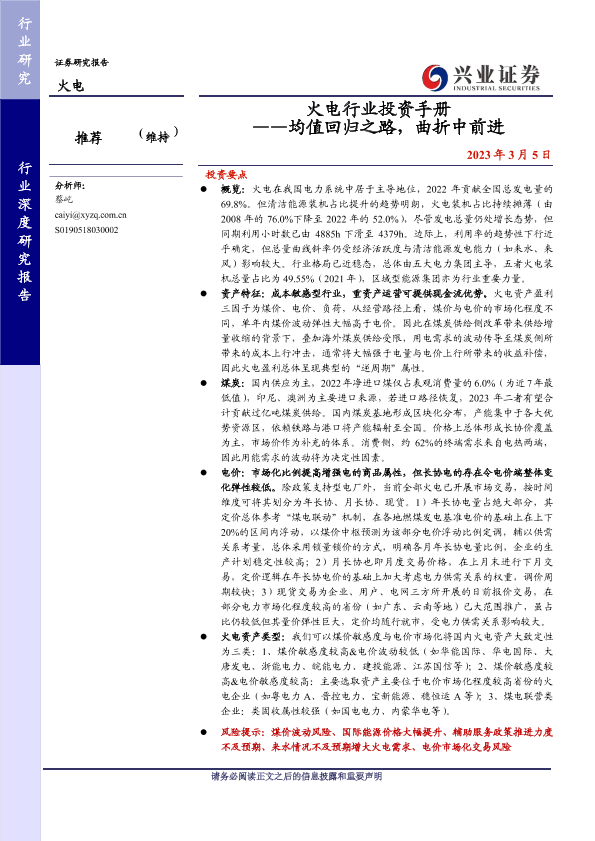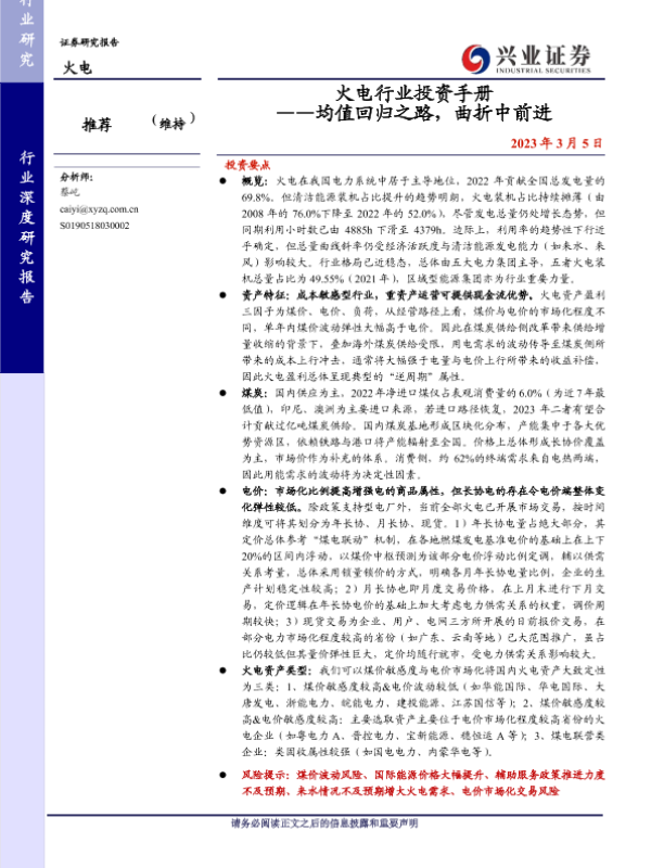 【兴业证券】【20230305】火电行业投资手册 ——均值回归之路,曲折中前进-64页