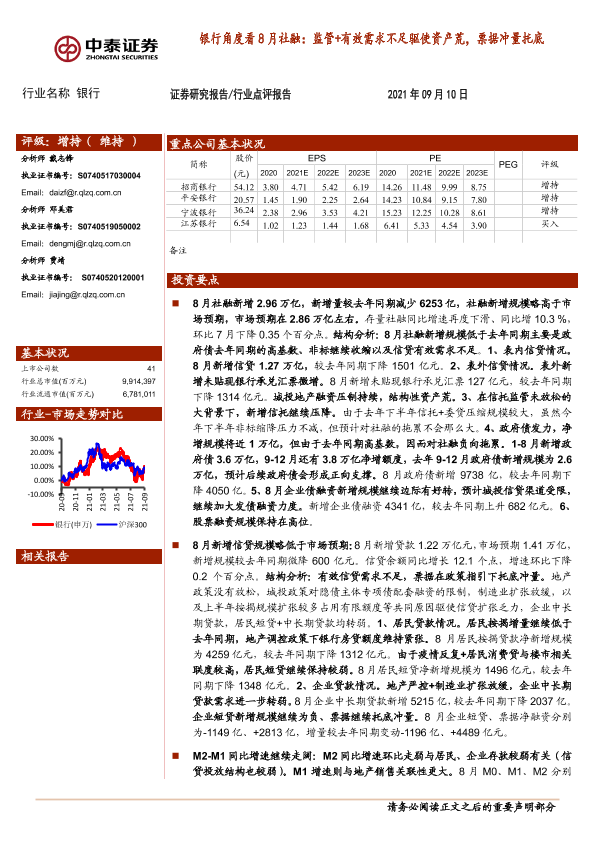 【中泰证券】【20210910】银行角度看8月社融:监管+有效需求不足驱使资产荒,票据冲量托底-15页