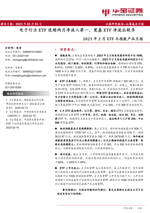 【华宝证券】【20230303】2023年2月ETF与指数产品月报:电子行业ETF连续两月净流入第一,宽基ETF净流出较多-24页