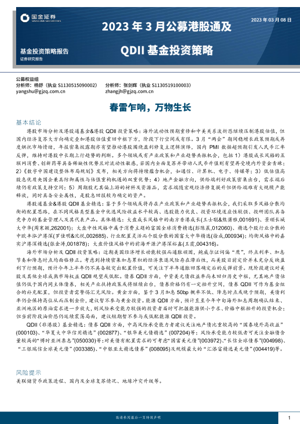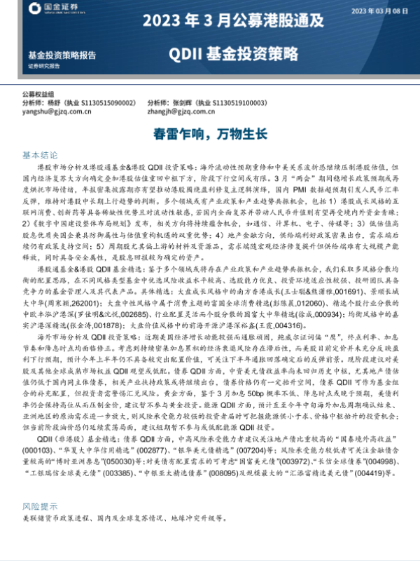 【国金证券】【20230308】2023年3月公募港股通及QDII基金投资策略:春雷乍响,万物生长-39页