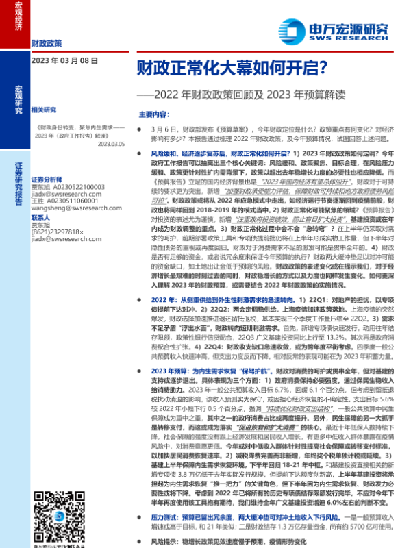 【申万宏源】【20230308】2022年财政政策回顾及2023年预算解读:财政正常化大幕如何开启?-22页