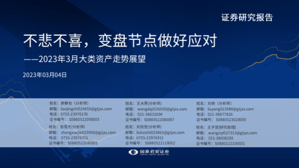 【国泰君安证券】【20230304】2023年3月大类资产走势展望:不悲不喜,变盘节点做好应对-47页