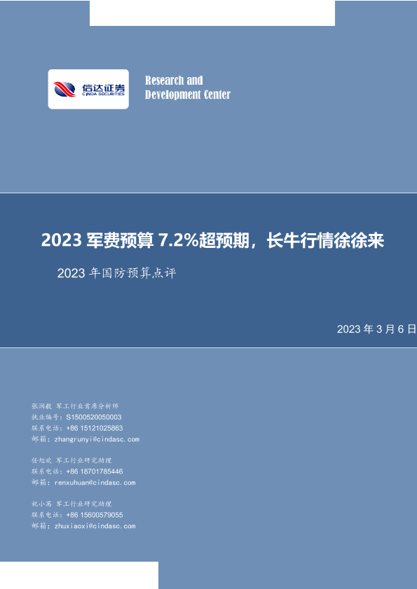 【信达证券】【20230306】2023年国防行业预算点评:2023军费预算7.2%超预期,长牛行情徐徐来-17页