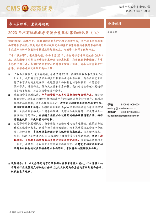 【海通证券】【20230309】2023年招商证券春季交流会量化私募论坛纪要(上):春山多胜事,量化再起航-18页