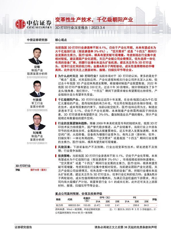 【中信证券】【20230304】3D打印行业深度报告:变革性生产技术,千亿级朝阳产业-37页