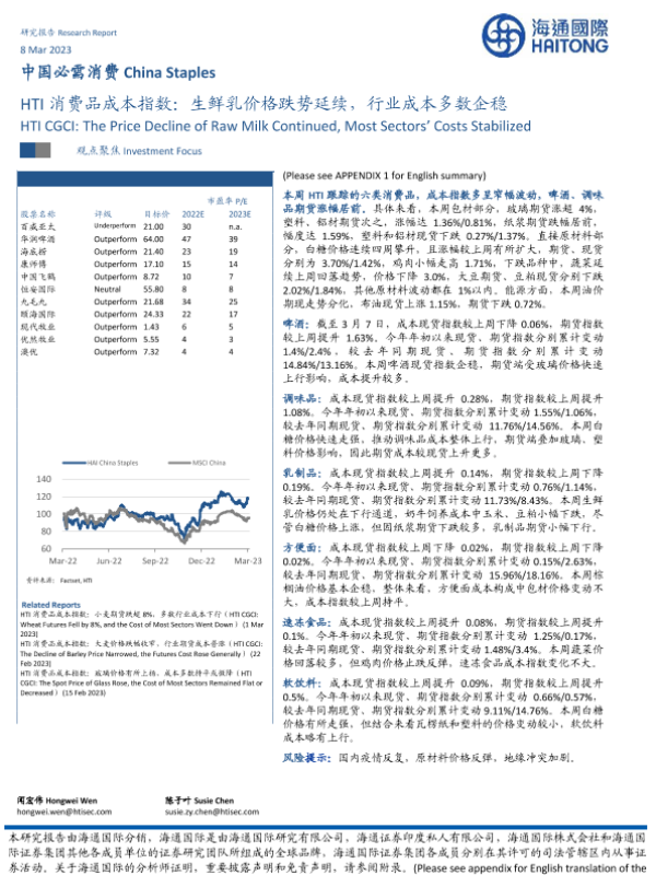 【海通证券】【20230308】HTI消费品成本指数:生鲜乳价格跌势延续,行业成本多数企稳-16页