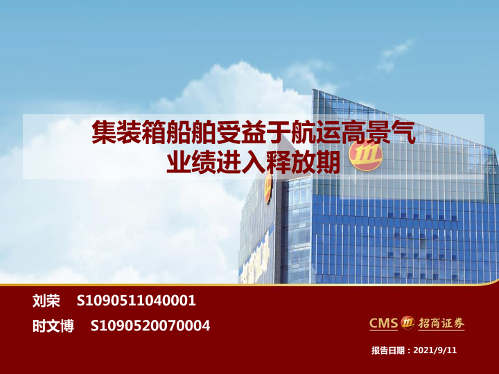 【海通证券】【20210911】集装箱船舶行业:集装箱船舶受益于航运高景气,业绩进入释放期-17页