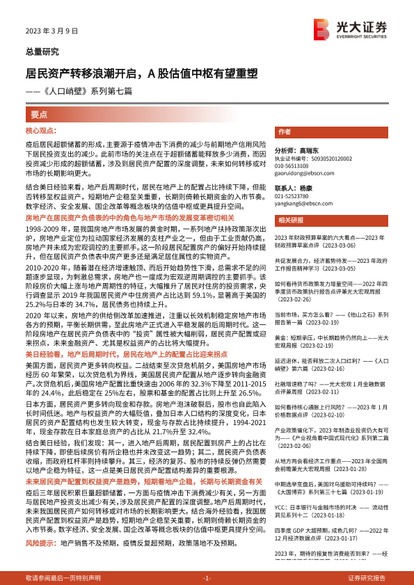 【光大证券】【20230309】《人口峭壁》系列第七篇:居民资产转移浪潮开启,A股估值中枢有望重塑-20页