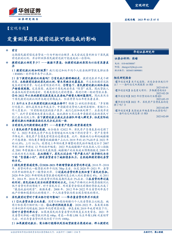 【华创证券】【20230307】定量测算居民提前还款可能造成的影响-15页