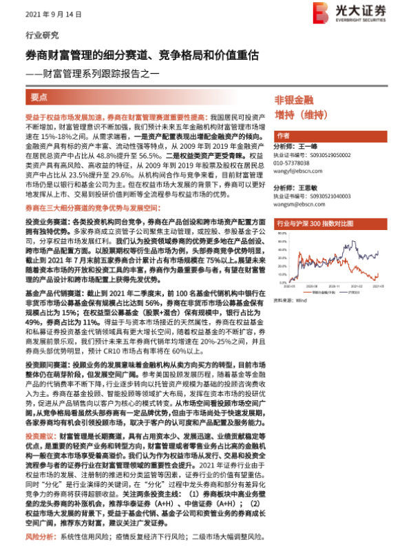 【光大证券】【20210914】非银金融行业财富管理系列跟踪报告之一:券商财富管理的细分赛道、竞争格局和价值重估-23页