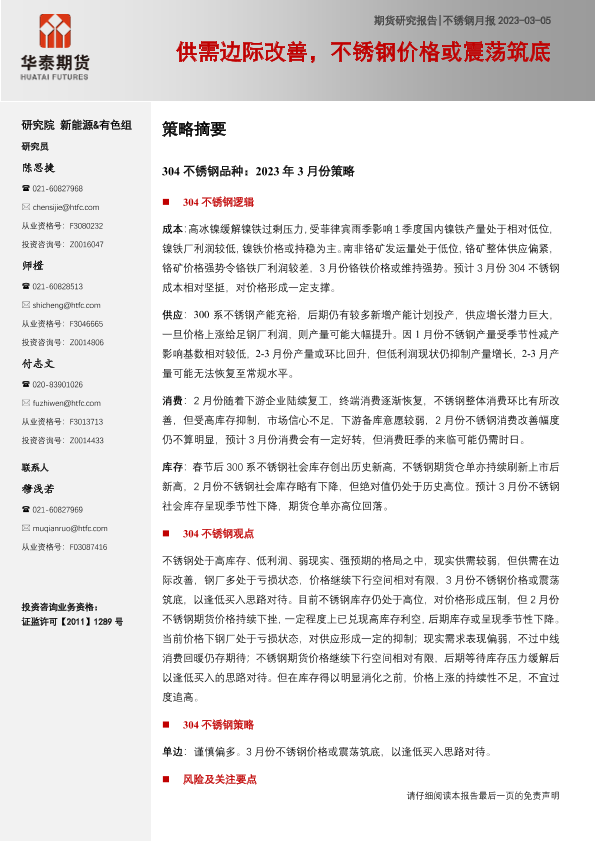 【华泰期货】【20230305】不锈钢月报:供需边际改善,不锈钢价格或震荡筑底-20页