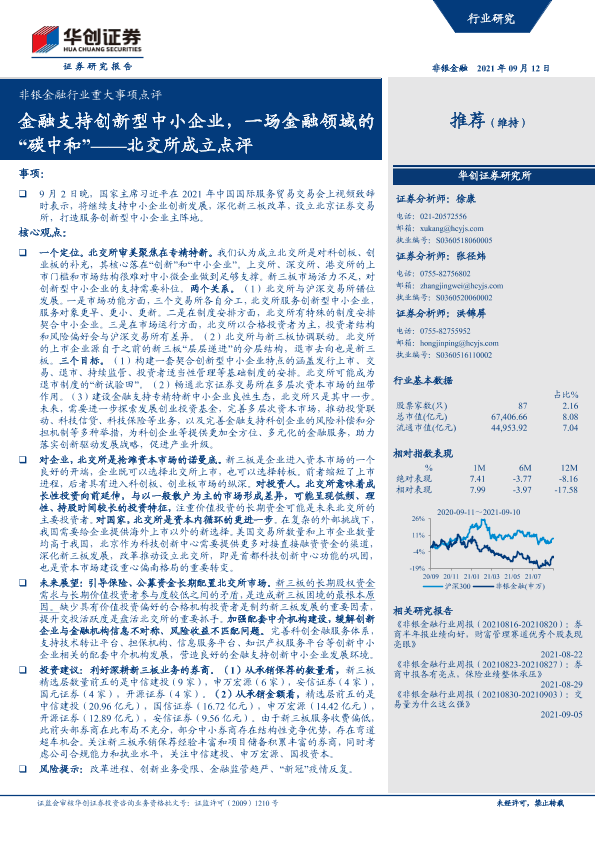 【华创证券】【20210912】非银金融行业重大事项点评:北交所成立点评,金融支持创新型中小企业,一场金融领域的“碳中和”-17页