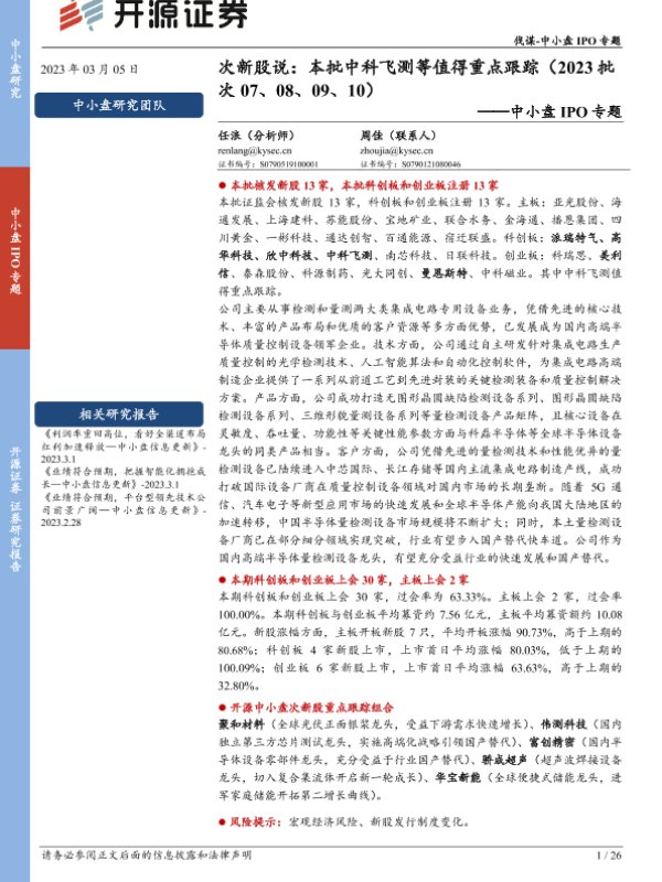 【开源证券】【20230305】中小盘IPO专题:次新股说,本批中科飞测等值得重点跟踪(2023年批次07、08、09、10)-26页