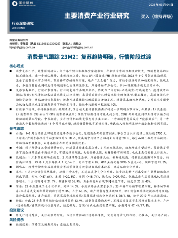 【国金证券】【20230304】主要消费产业行业消费景气跟踪23M2:复苏趋势明确,行情阶段过渡-26页