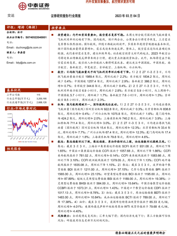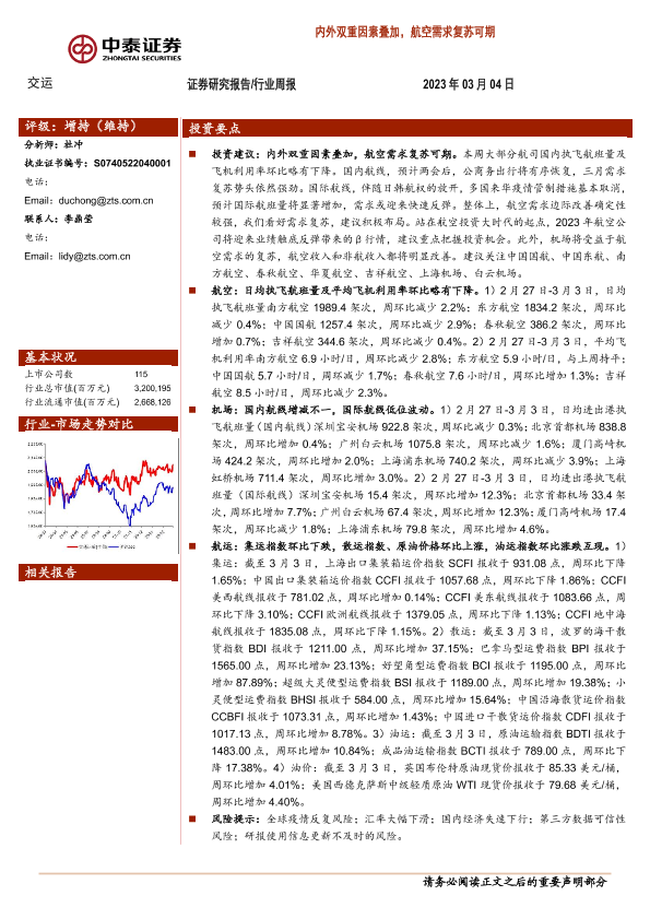 【中泰证券】【20230304】交运行业周报:内外双重因素叠加,航空需求复苏可期-36页