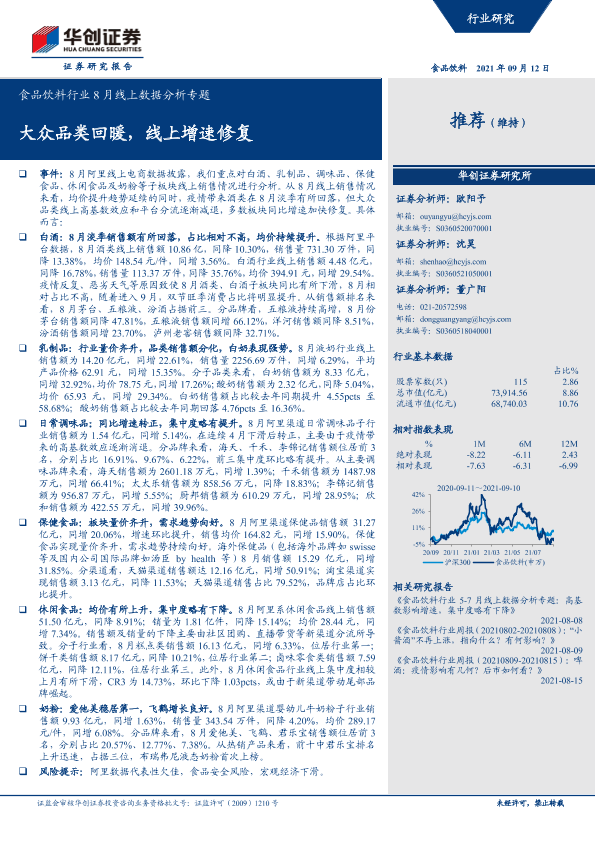 【华创证券】【20210912】食品饮料行业8月线上数据分析专题:大众品类回暖,线上增速修复-21页