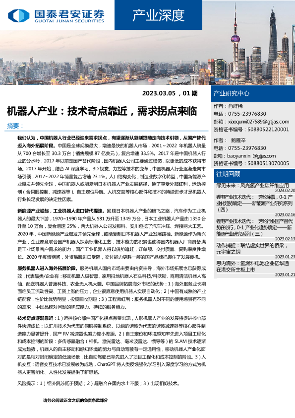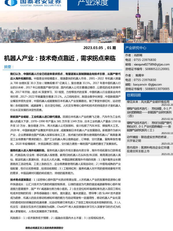 【国泰君安证券】【20230305】产业深度01期:机器人产业,技术奇点靠近,需求拐点来临-45页
