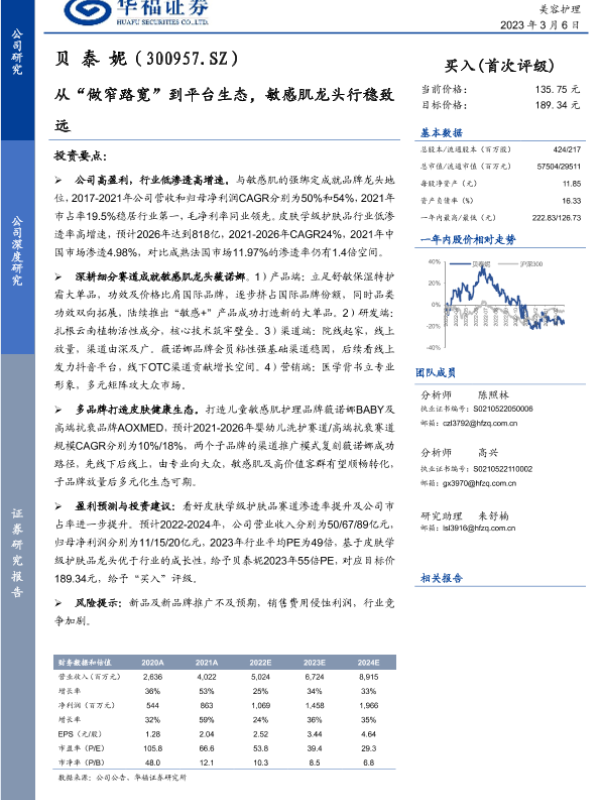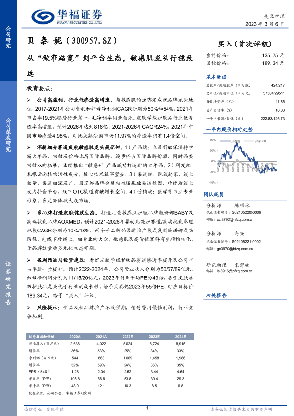 【华福证券】【20230306】从“做窄路宽”到平台生态,敏感肌龙头行稳致远-37页