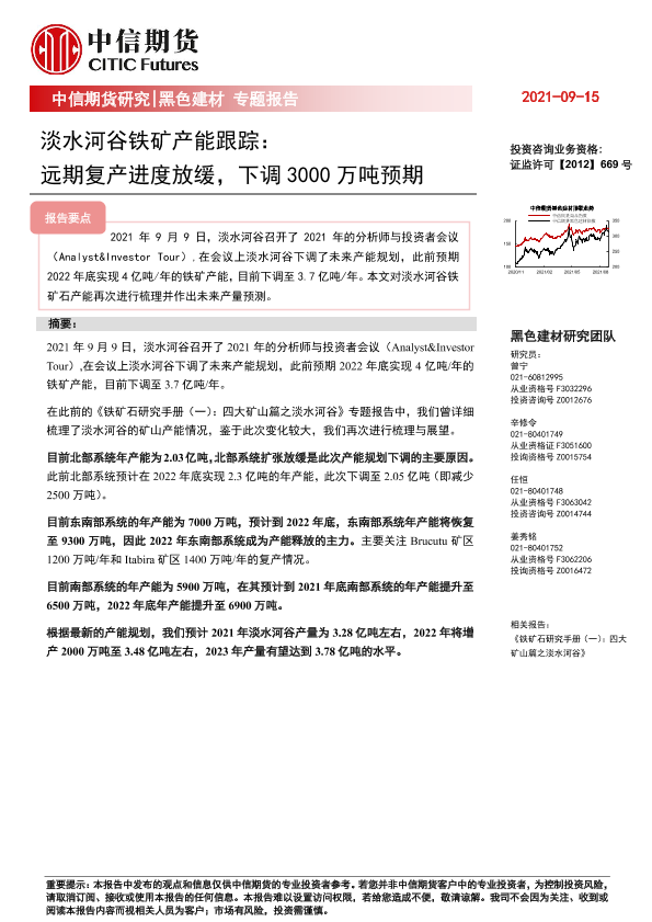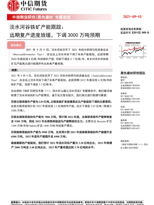 【中信期货】【20210915】黑色建材专题报告:淡水河谷铁矿产能跟踪,远期复产进度放缓,下调3000万吨预期-16页