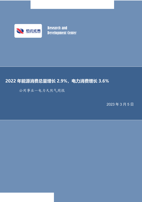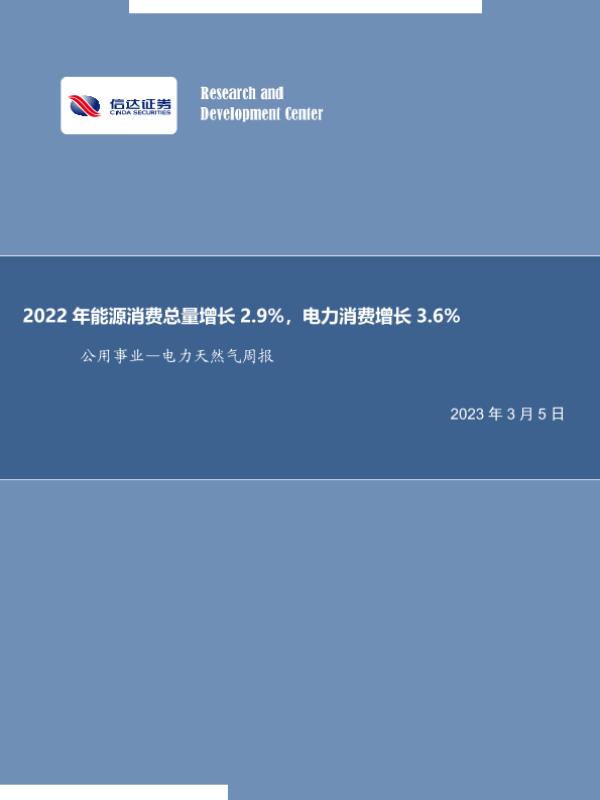 【信达证券】【20230305】公用事业行业~电力天然气周报:2022年能源消费总量增长2.9%,电力消费增长3.6%-21页
