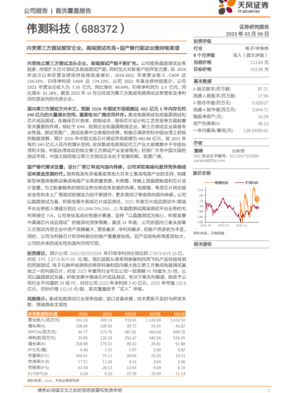 【天风证券】【20230306】内资第三方测试领军企业,高端测试布局+国产替代驱动业绩持续高增-27页