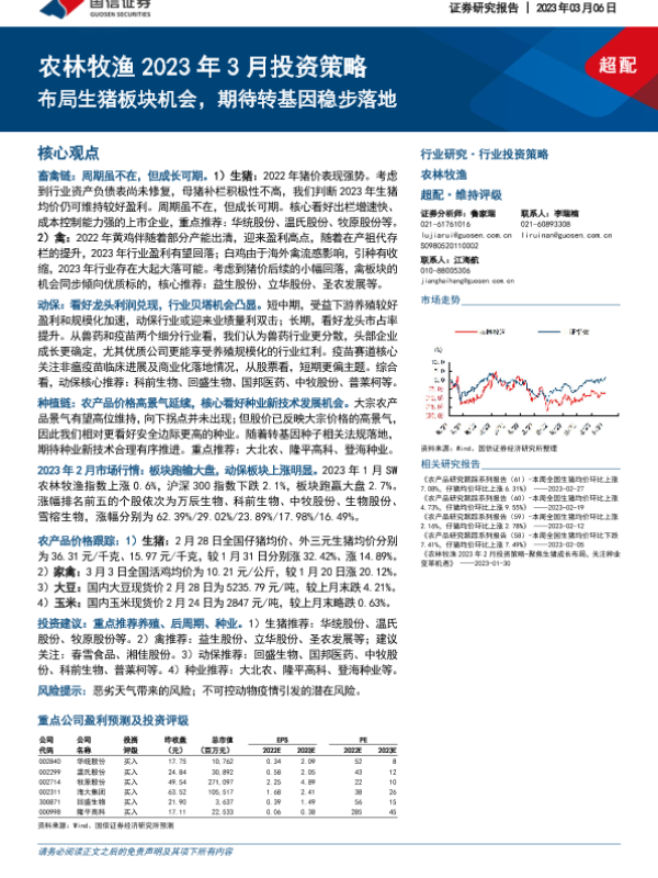 【国信证券】【20230306】农林牧渔2023年3月投资策略:布局生猪板块机会,期待转基因稳步落地-25页