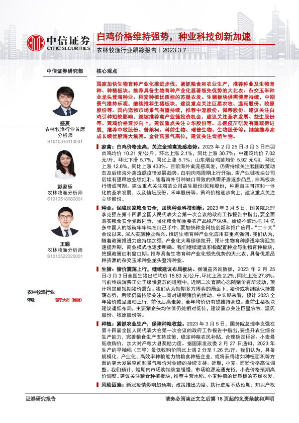 【中信证券】【20230307】农林牧渔行业跟踪报告:白鸡价格维持强势,种业科技创新加速-19页