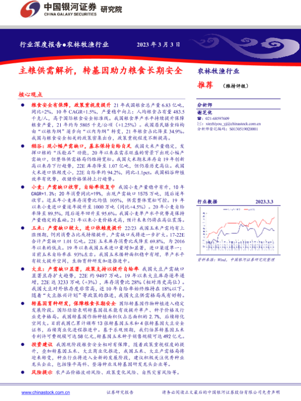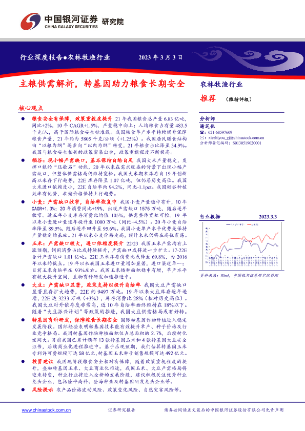 【银河证券】【20230303】农林牧渔行业深度报告:主粮供需解析,转基因助力粮食长期安全-31页