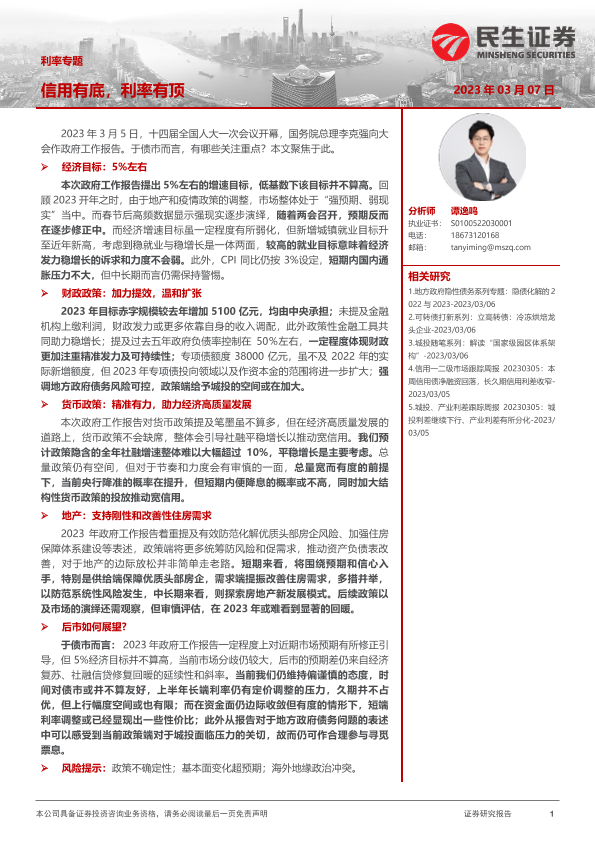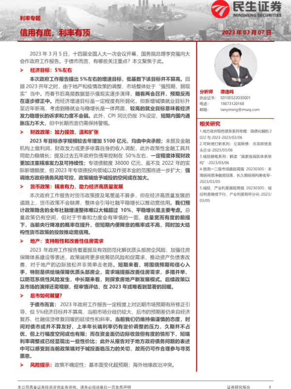 【民生证券】【20230307】利率专题:信用有底,利率有顶-20页