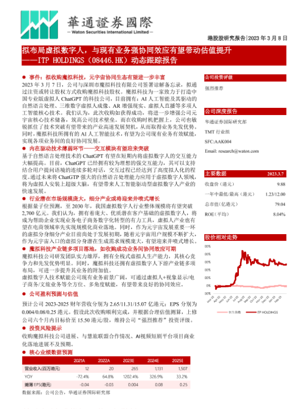 【华通证券国际】【20230308】拟布局虚拟数字人,与现有业务强协同效应有望带动估值提升-18页