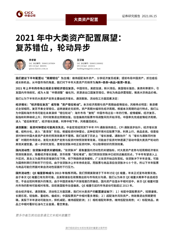 【中金公司】【20210615】2021年中大类资产配置展望:复苏错位,轮动异步-44页